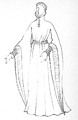 Gentleman of late 14th/early 15th centuries in houppeland with funnel sleeves and bottleneck collar