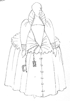 Elizabethan Lady in cartwheel farthingale with fan ruff.